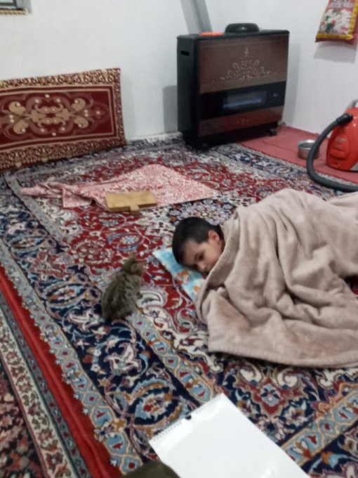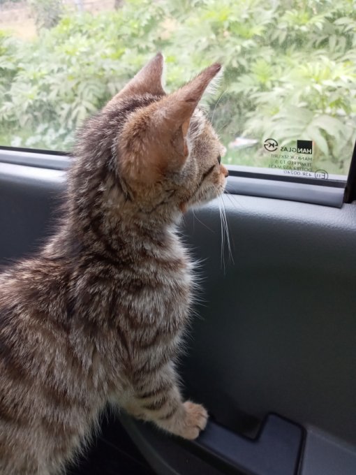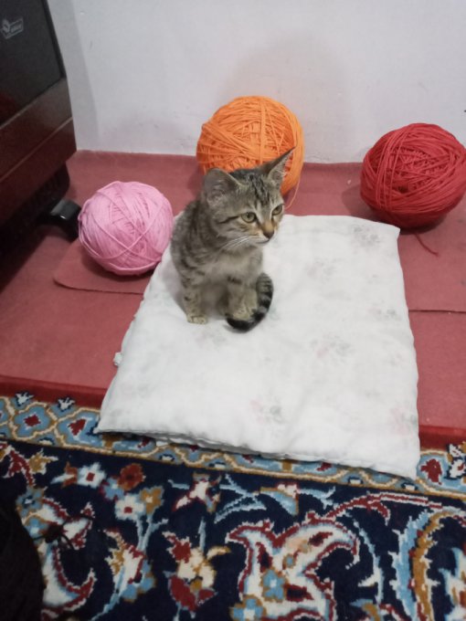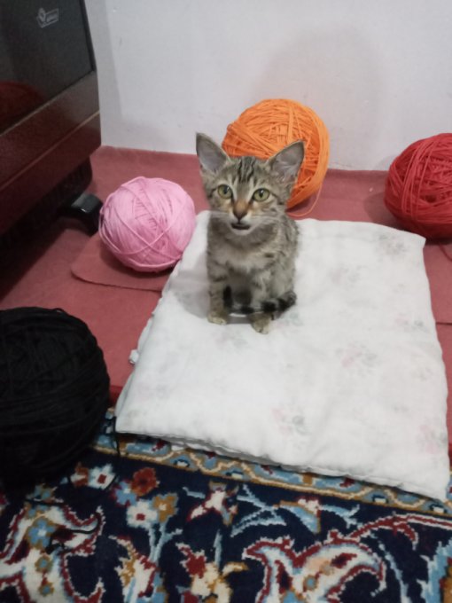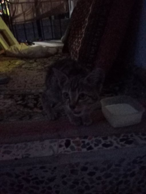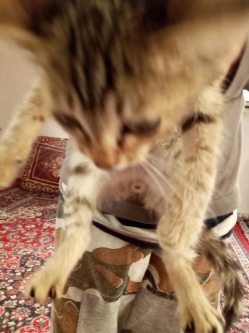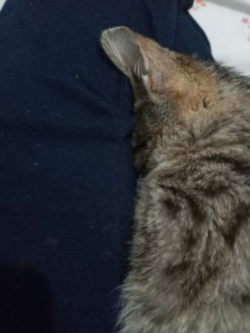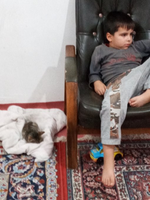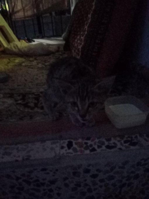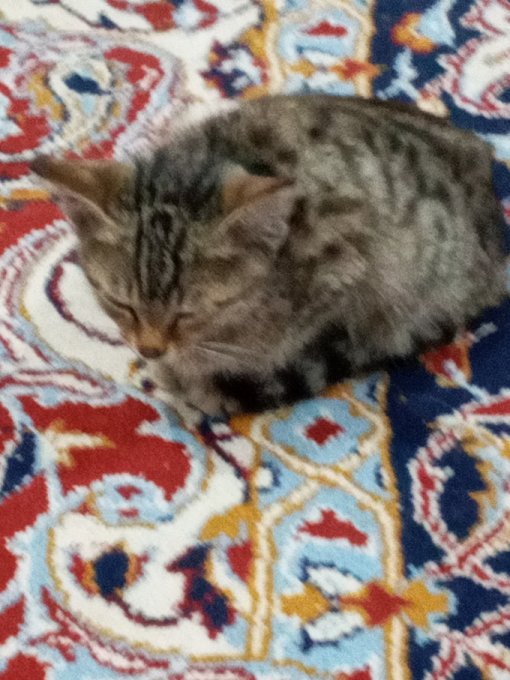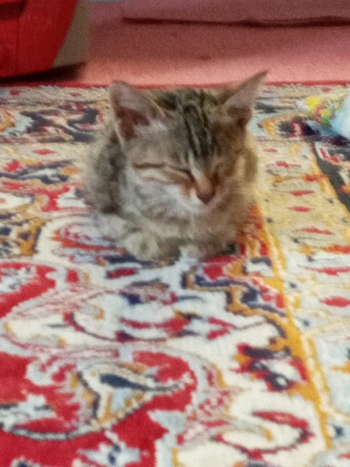Сейчас он спит на ковре, жалко на улицу. Скоро почти сутки как он у