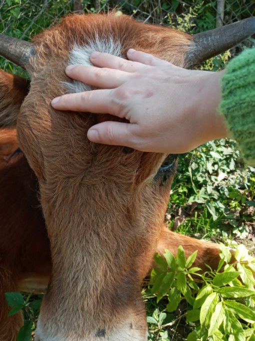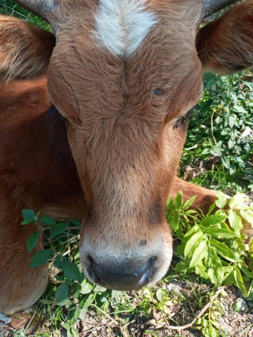 Погладила вчера бычка Борю, мы сразу подружились и тут же выяснилось, что он очередной бедолага и лежит целый день не просто так. Ножки все израненные, но видно, что его лечат спреем тетрациклин. Дали ему с малым хлеб, он съел, то есть клиент более жив чем мёртв. Кстати, это тот бычок которого Елизавета наша гоняла от нас.
