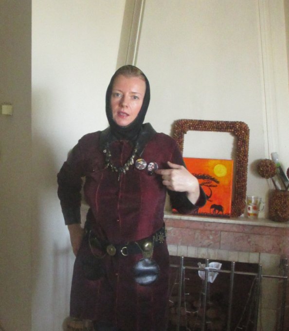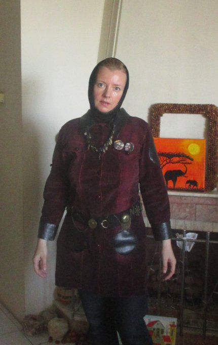 Решила показать свой пиджак который я смастерила из старого пиджака, Поменяла воротник и манжеты на кожаные. Сделала вставки кожаные. Пояс и колье смастерила из металлических побрякушек из магазина хорошей фурнитуры. Жалко видно плохо. Но фоткать меня для мужа всегда испытание))) И значок Боба Марли, я не шутила)))