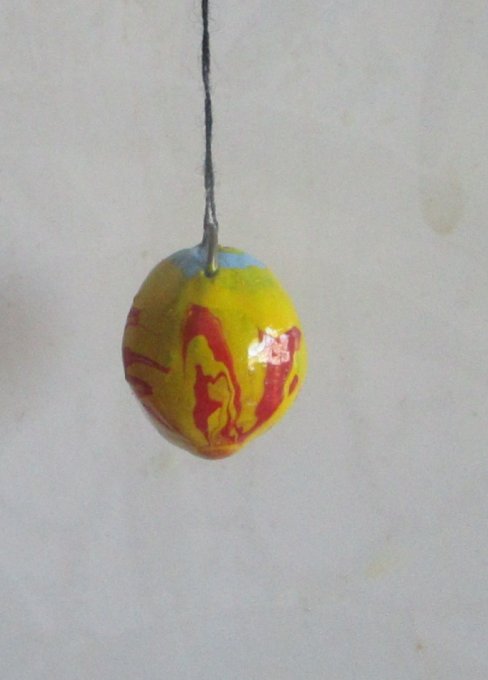 Мои первые бусины. Вы не представляете какая это приятная работа. Кто захочет расскажу как их делать. Придумала сделать декоративное дерево, а на нем будут такие заморские фрукты. Это только проба желтый с красным и для яркости добавила черный. Еще буду делать бело-стние (гжель), жовто-блакитни укр))), красно-черные. Колечко вставляла металлическое.
