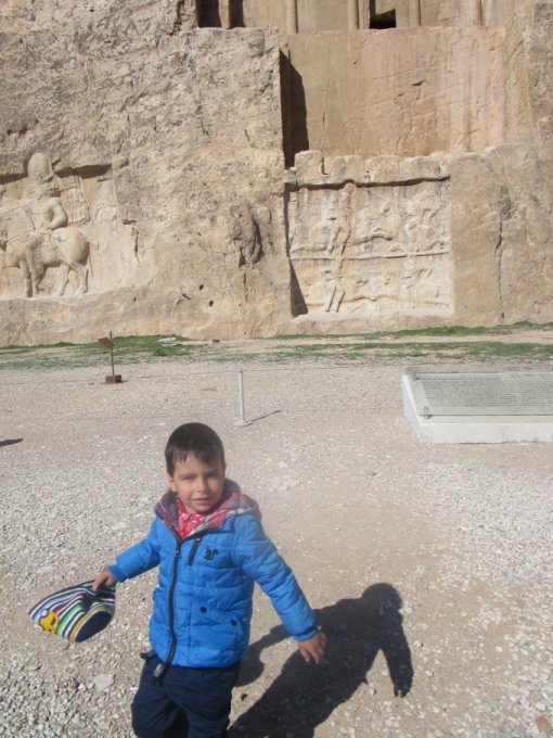 С виду просто лимон, разрезаем, а он кровавый....это со сладким соком значит. Я даже не слыхивала о таких. Всем моим деревьям 7 лет, и вот первый раз лимоны. И какие. Такие же твердые, кислые и ароматные, но со сладким соком. Балдеж!!!Пару фоток из поездки, буду писать подробные посты, Персиполис это вам не шуточки, столица Великой Персидской Империи ( а история знает только две великие империи и Великую Римскую, остальные империи -  просто империи) две с половиной тысячи лет построен не на костях рабов, а вольными людьми ....Пару фоток...Мой сын Дарий, на могиле Дария Великого. На его могиле высеченной в скале видно как римляне склонили перед ним колени, вот чем он был велик. И как научила нас история, великая империя подрывает себя изнутри, на ослабевающую  Персидскую с гор напал Александр Македонский, а Таис Афинская все нафик подожгла. В скале видно три могилы великих персидских правителей. И масштабная фотка из викепедии.