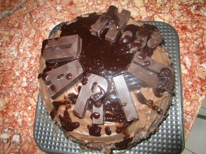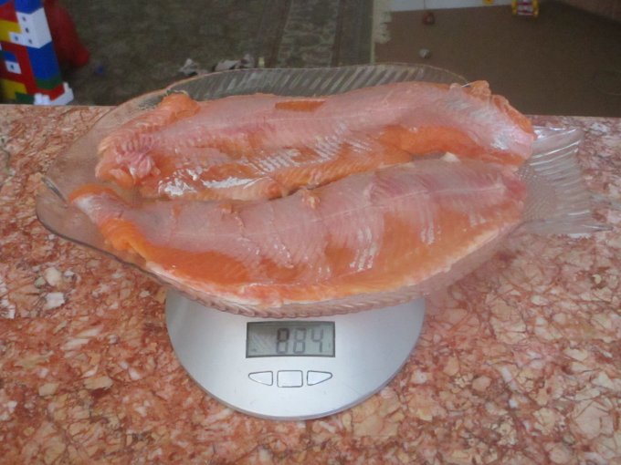 Вобщем, вот так по-домашнему))Сначала я его в мульте горячий переворачивала, не догадалась об этом поразмышлять заранее.....Потом поломались буквы и настроение.....Но сахарная пудра завтра все исправит и я искренне считаю, что самые вкусные торты должны выглядеть именно так. Завтра идем в ресторан, а вечером моим пожарю телячьи отбивные, а мне рыбка. Такая рыба (лососевая форель у меня стоит2 доллара)))