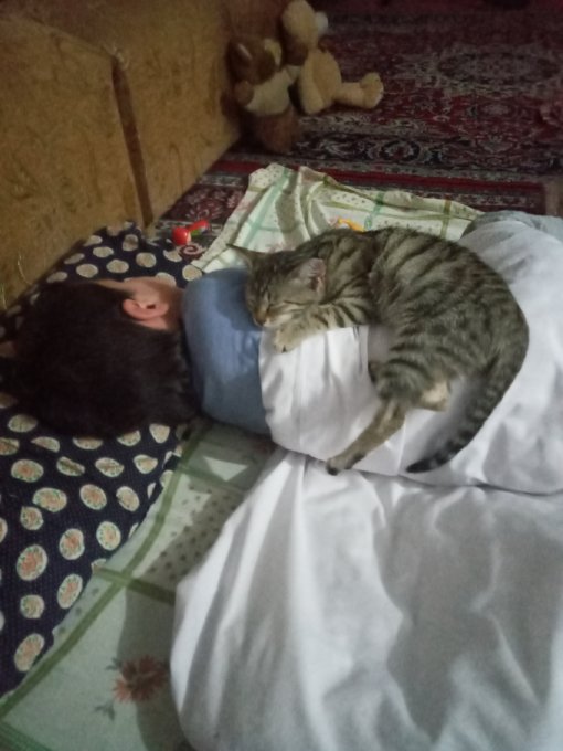 Котик продолжает проходить " профилактику". Ночью выношу, орёт