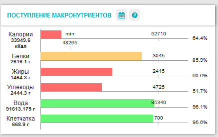 витаминов и минералов, выполнение норм БЖУ,