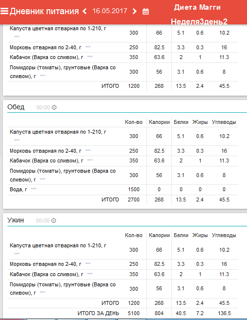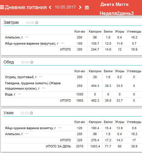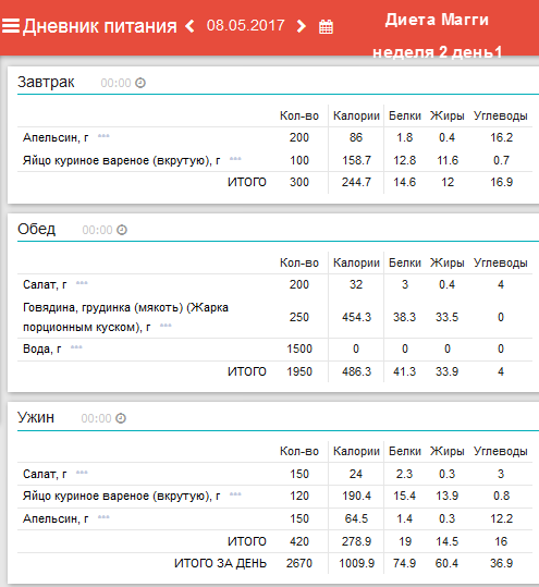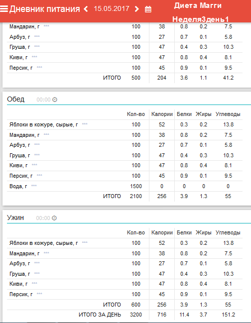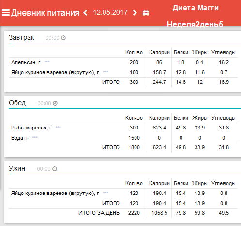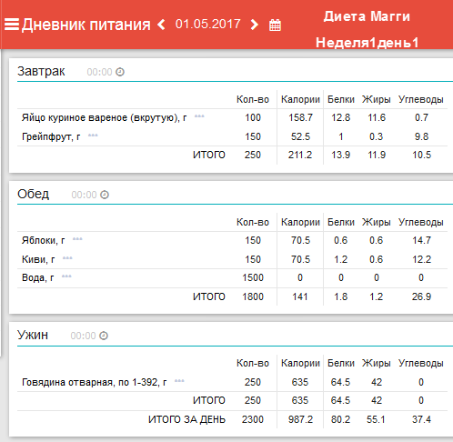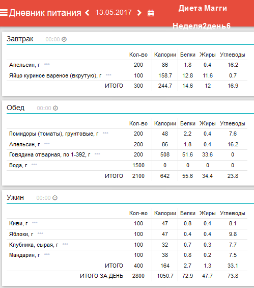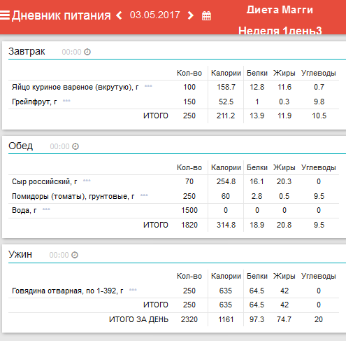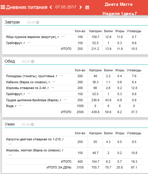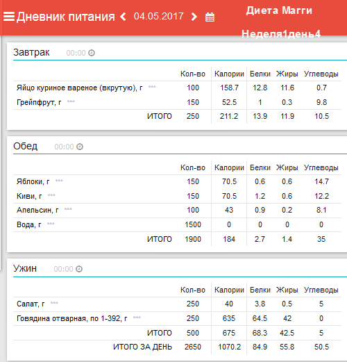 программы «Мой Здоровый Рацион». Анализ диеты на содержание