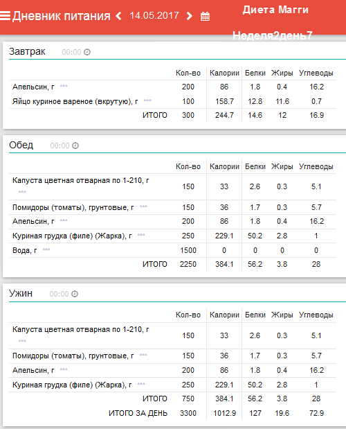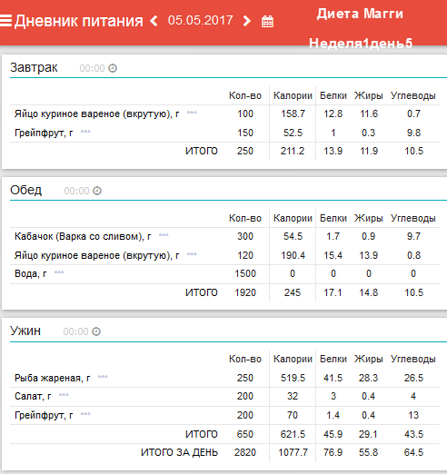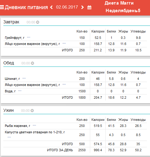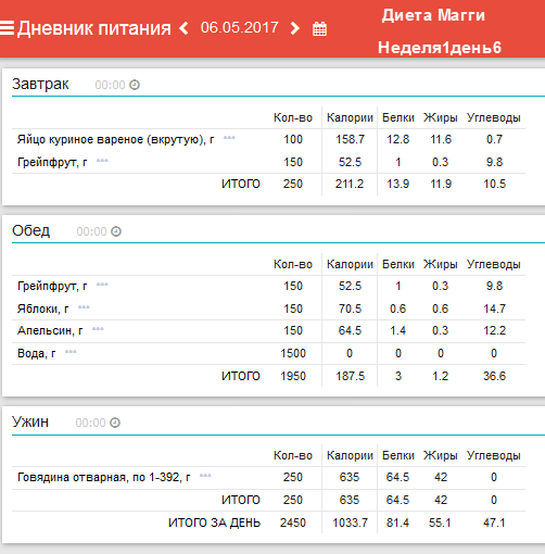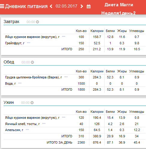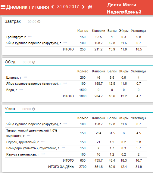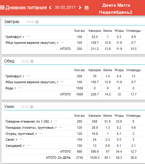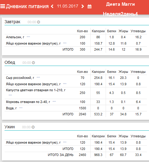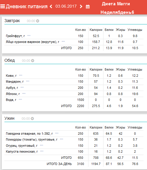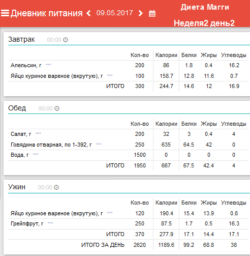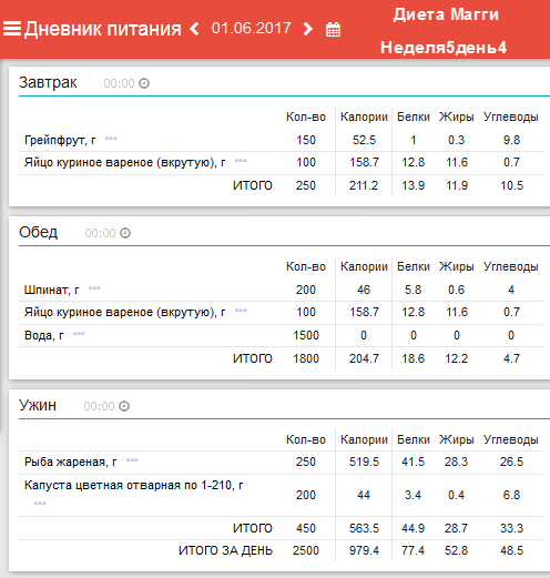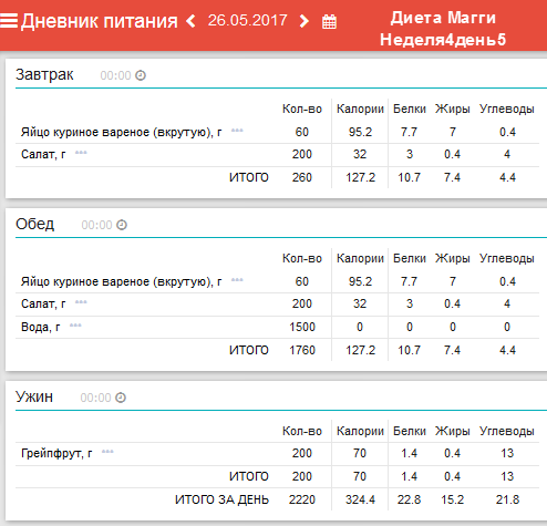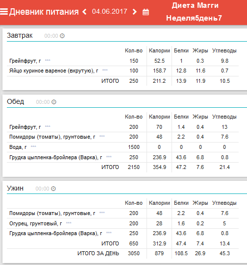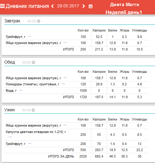 Ежедневный завтрак: 1/2 грейпфрута и 1-2 яйца. Понедельник: обед –