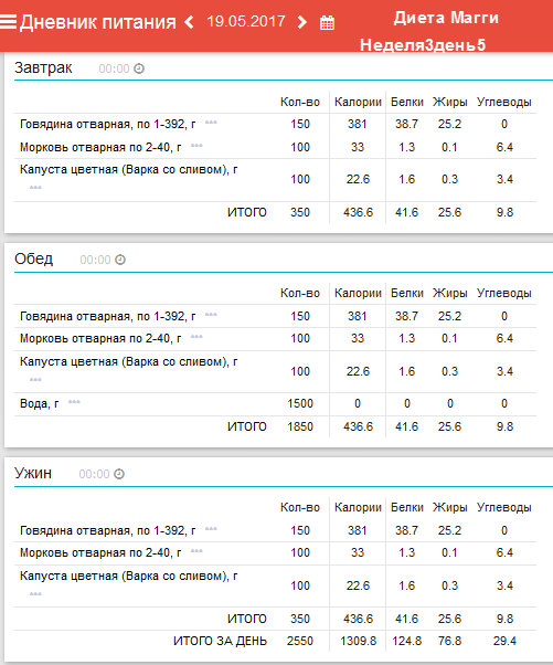 вариант достаточно сытого рациона, учтя все пожелания создателей