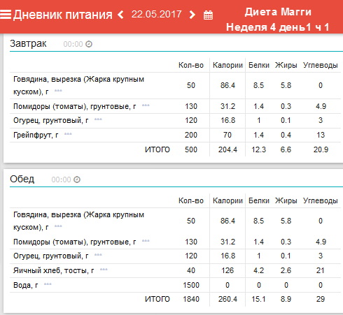 фактические реакции как то КБЖУ и поступление витаминов и минералов