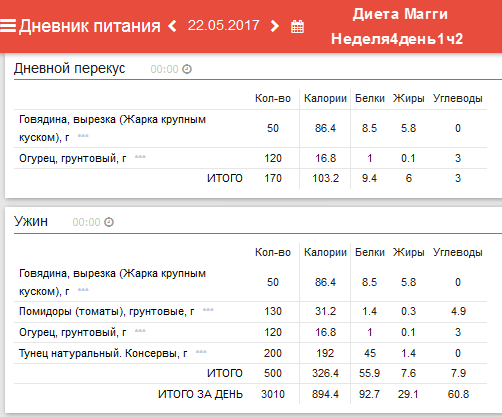 дают нам высокие результаты по рейтингу рациона (71%) и даже КБЖУ.