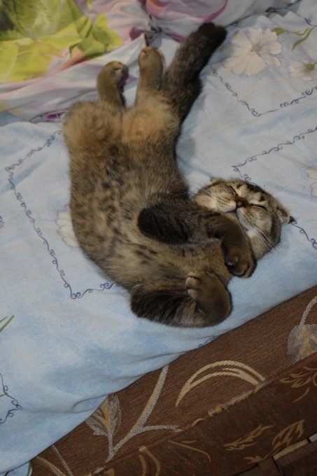 Котик только засыпает, сразу начинает бежать во сне. Может, его