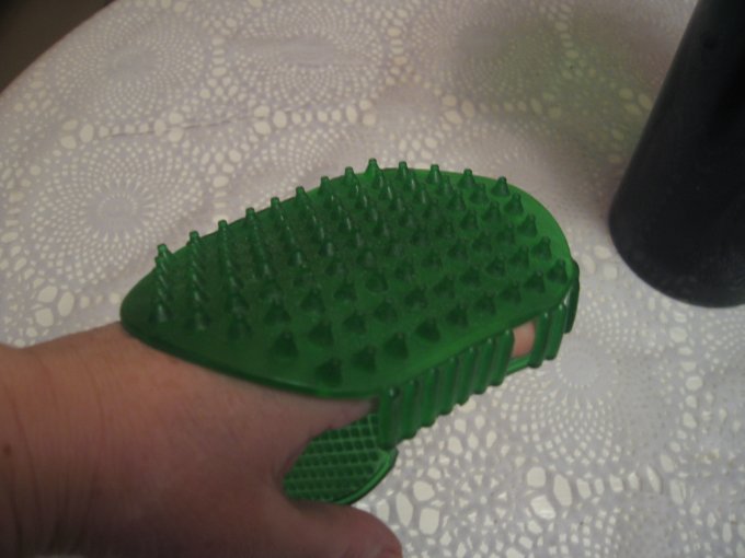 ладонями.....снимается даже прошлогодний загар))) потом кожа
