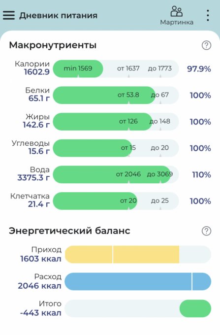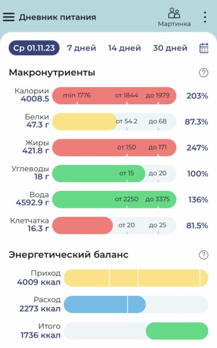 получился большой перебор по белкам и углеводам. Я, конечно,