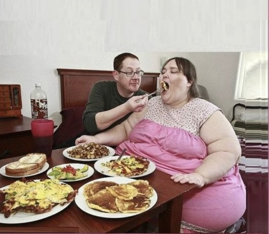 Давай, глотай колбаску! Вот блинчики с намазкой!