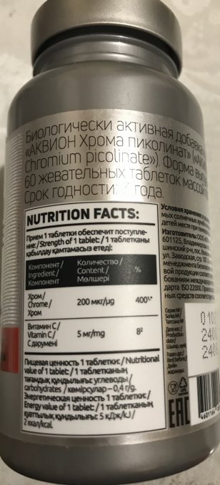 Пришёл мой пиколинат хрома от тяги к сладкому. Жевательные