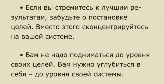 с целями, как советует Клир, а с самой системой. Результатами уже