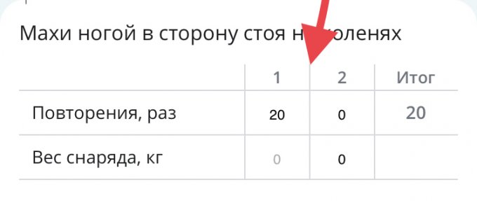 Если нажать на эту чёрточку, то цифра подхода раздвоится и можно