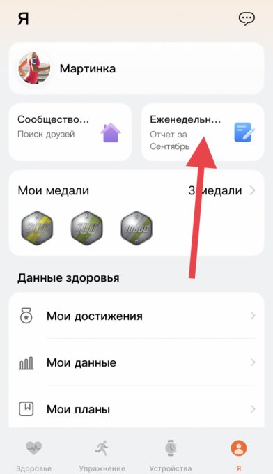 нужный раздел, не листая настройки.Вот, на таком остановилась.С этого экрана можно сразу перейти в раздел спортивных нагрузок.