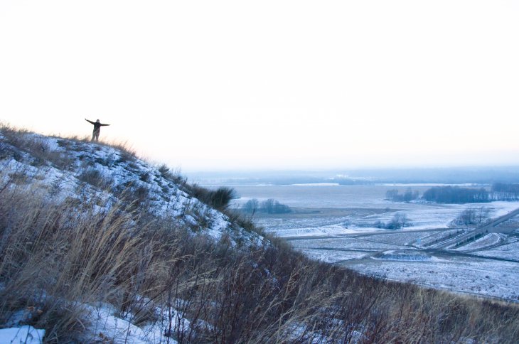 Красиво.А внизу какая-то замерзшая река?Или просто поля?
