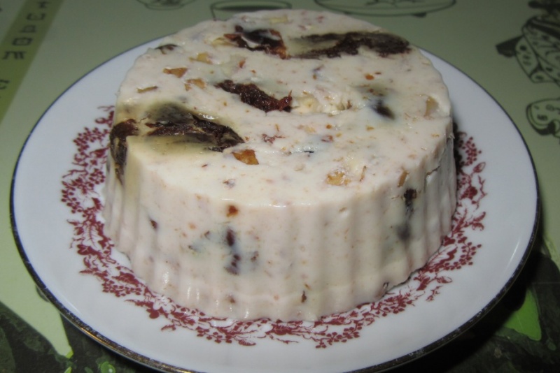 Соединить чернослив, орехи и йогурт с желатином, перемешать.
