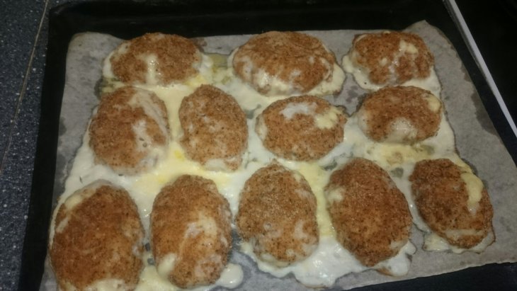 "Прячем" сыр внутри фарша и обваливаем биточки в сухарях.