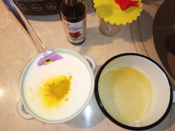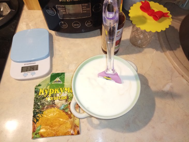 Вместо или вместе с куркумой можно использовать корицу, ваниль, молотый мускатный орех, а можно ничего не использовать вовсе, без куркумы сделать.