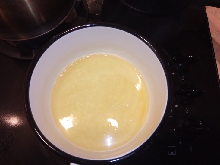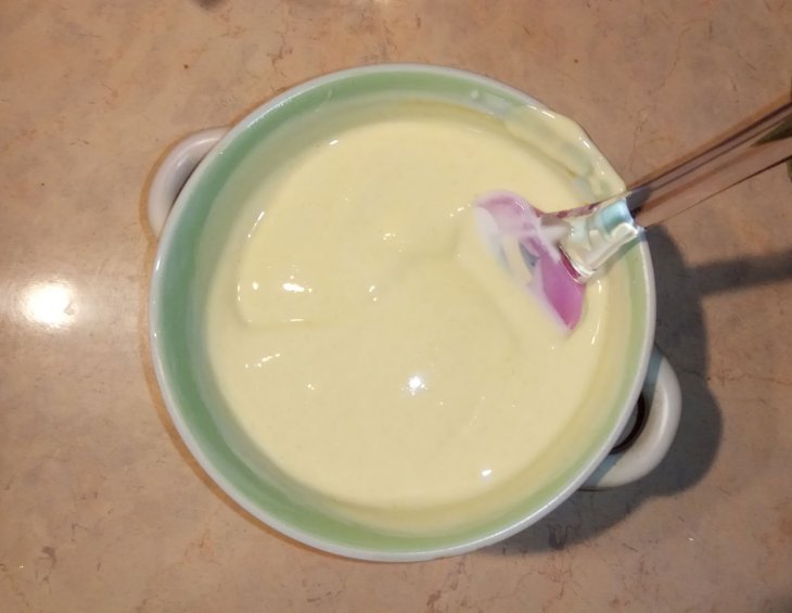 Распускаем желатин, как написано на упаковке. Я обычно заливаю водой и через несколько минут подогреваю.