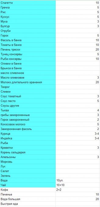 Для семьи консервы, варенья, растительные масла, макароны, крупы,