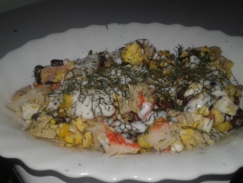 крабовыми палочками попробовать, думаю, тоже вкусно.