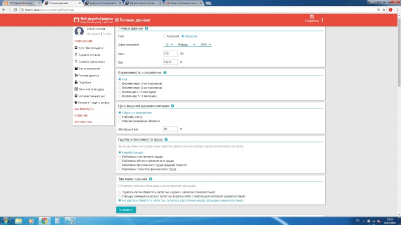 рост 172, вес 132.8, не работающие, тип сложения: не удалось обхватить запястье, осталось расстояние между пальцами. может ли повлиять на коридор вес которого хочу достигнуть. Вес который для моего роста 66.6-73.9 а я поставила 80.