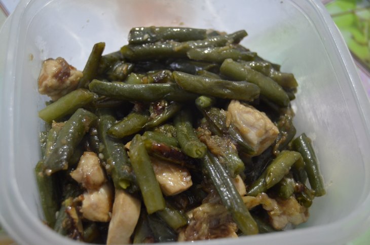 Чинсу. Перемешать и обжарить 2-3 минуты.выложить отварную фасоль, и