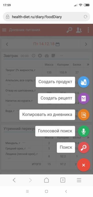 | Итого за день | 2650 | 1162 | 29 | 62 | 120 |