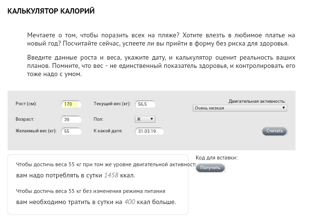 беседу. Достаточно точный калькулятор калорий