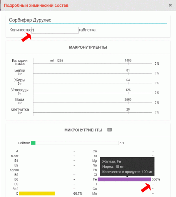 что эквивалентно содержанию Fe 100 мг