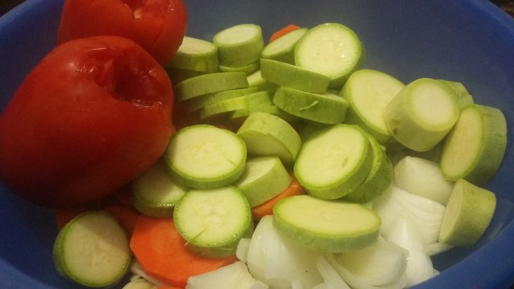 Все овощи нарезать произвольными небольшими косочками. В томатах сделать надрезы.