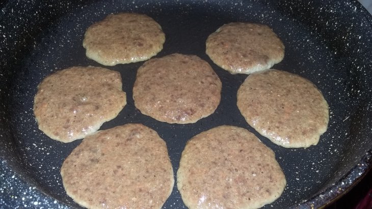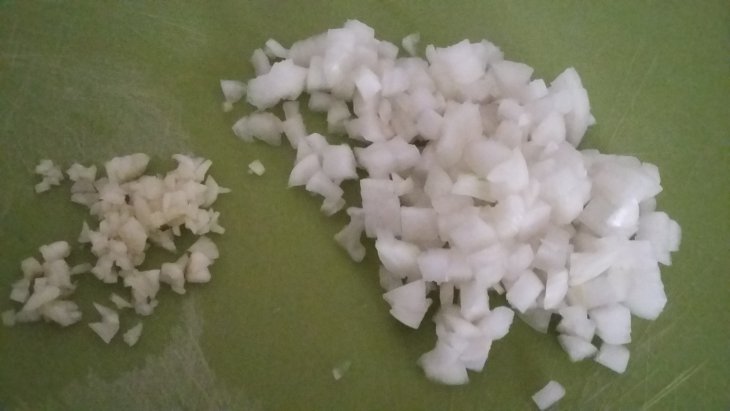 Лук порезала и обжарила на растительном масле. К нему же добавила муку. Раньше изпользовала обычную пшеничную муку высшего сорта, но в этот раз решила заменить на цельнозерновую. Вкус совсем не пострадал, а пользы больше.
