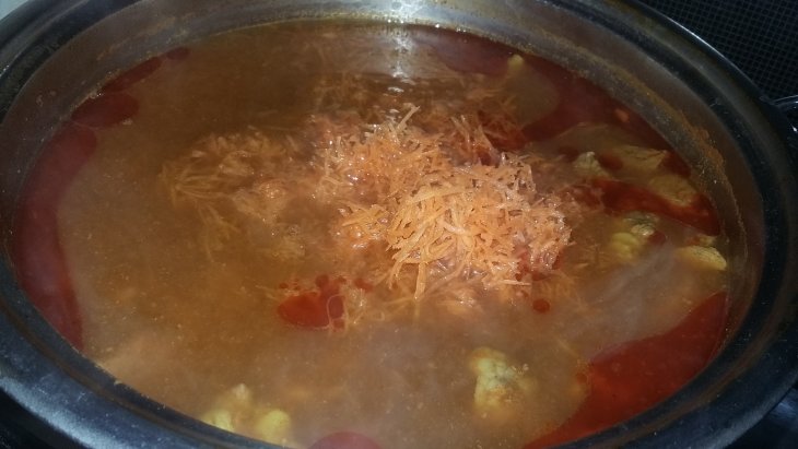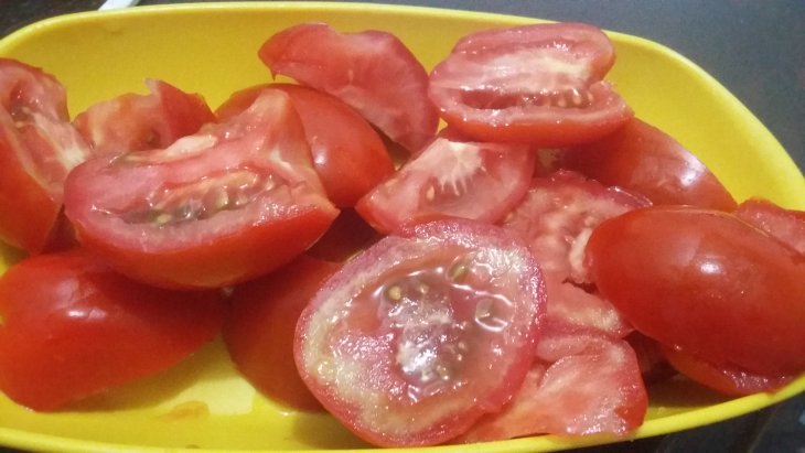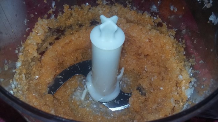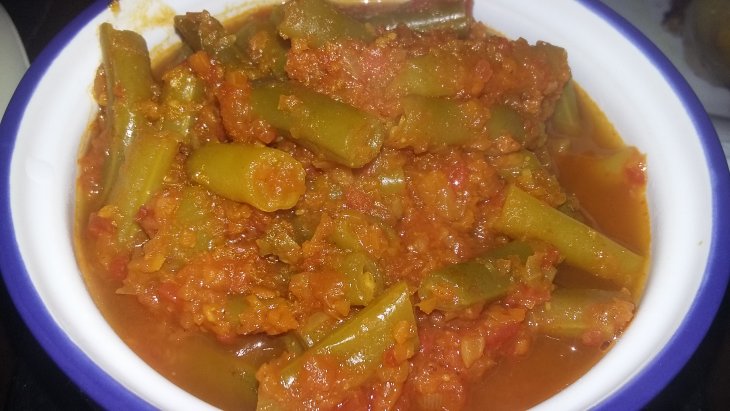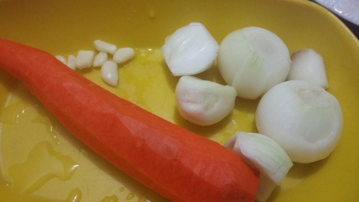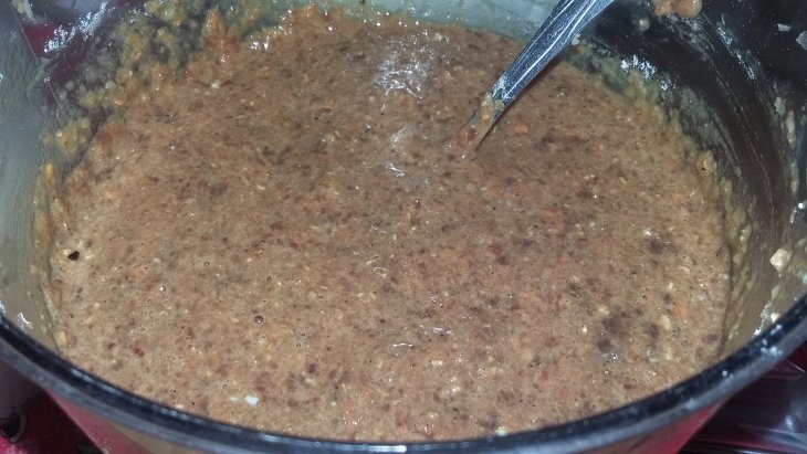 Налила воды, добавила томатную пасту и специи (все, кроме соли, т.к. ее лучше добавлять в самом конце). Тушила на маленьком огне часа два, потом добавила натертую на мелкой терке морковь.