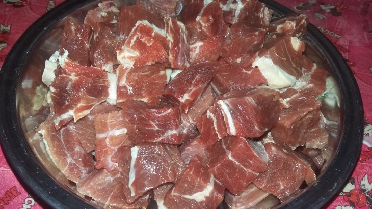Мясо помыла и порезала небольшими кусочками.