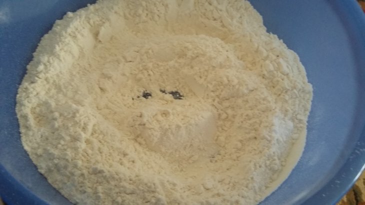 перемешиваем. Дабавляем муку и взбиваем. Дальше кипятим воду и