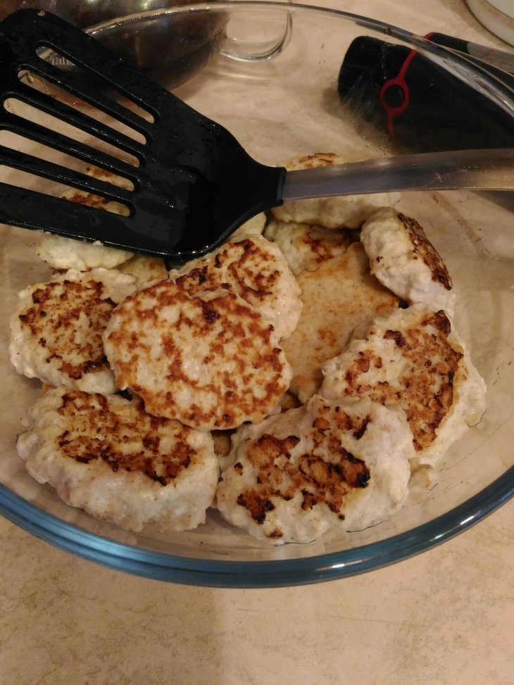 добавляю мелко нарезанный репчатый лук, тогда "отбивные" гораздо