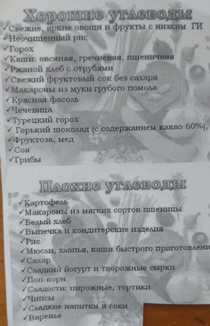 Кстати даже тип углевода ("быстрый"/"простой" или