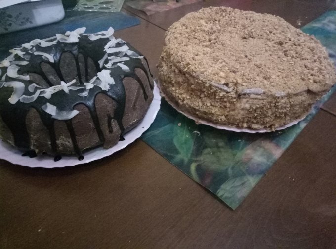Завтра у сыночка день рождение. Сегодня пекла тортики по энди шефу. Один как всегда медовик а второй кекс шоколадный с вишней и слиаочным сыром