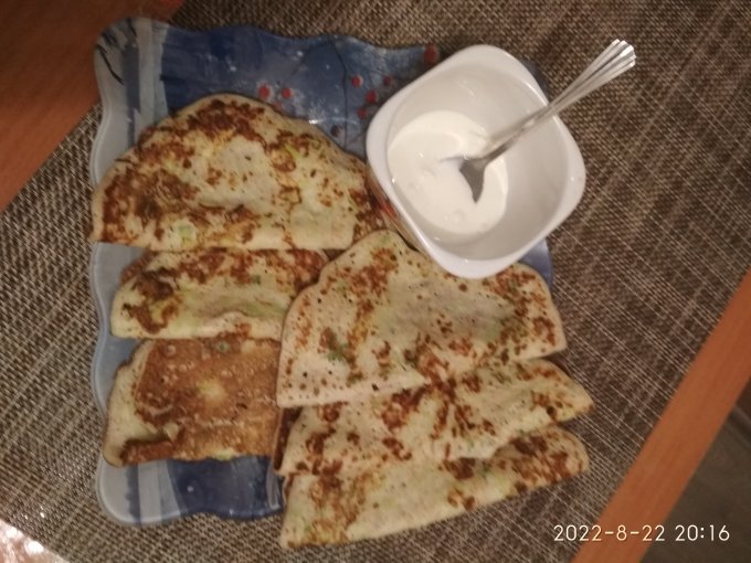 кабачек. Всё соединить, посолить. Тесто получается жидким, поэтому