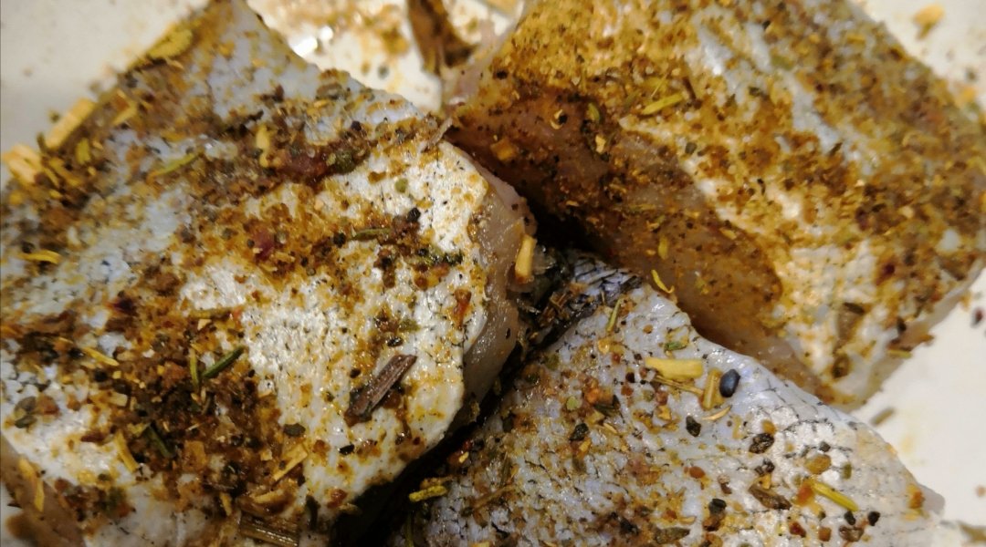 подготовленные куски филе приправой для рыбы Приправыч, 1ч. ложка