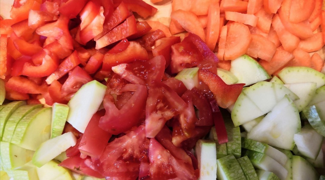 Нарезать овощи примерно одинакового размера. Морковь пластиками