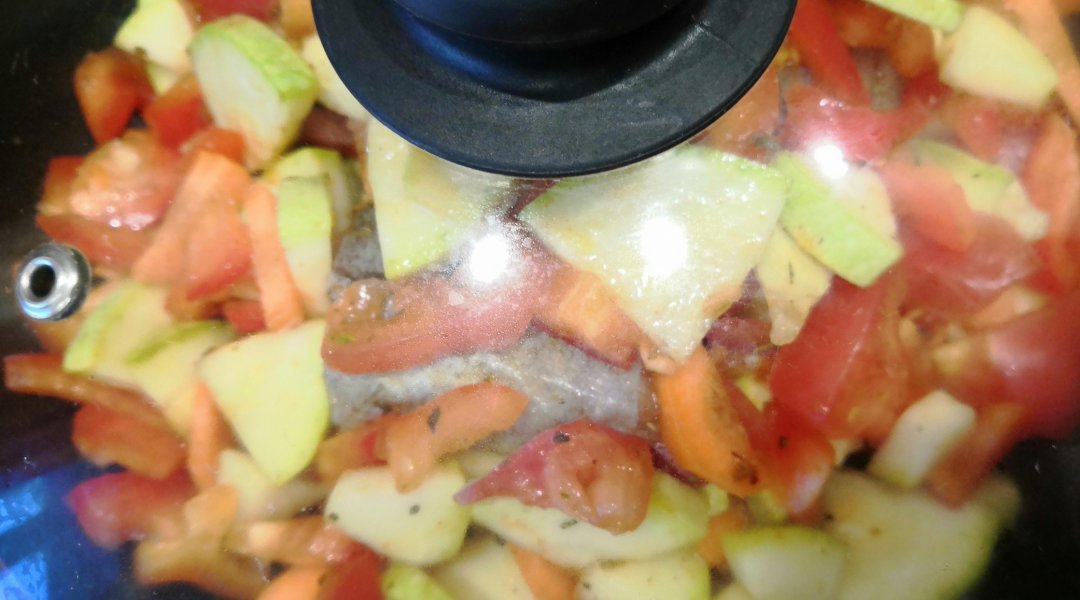 немного кипело. Тушить 17-20 мин. Долго не надо, чтобы овощи