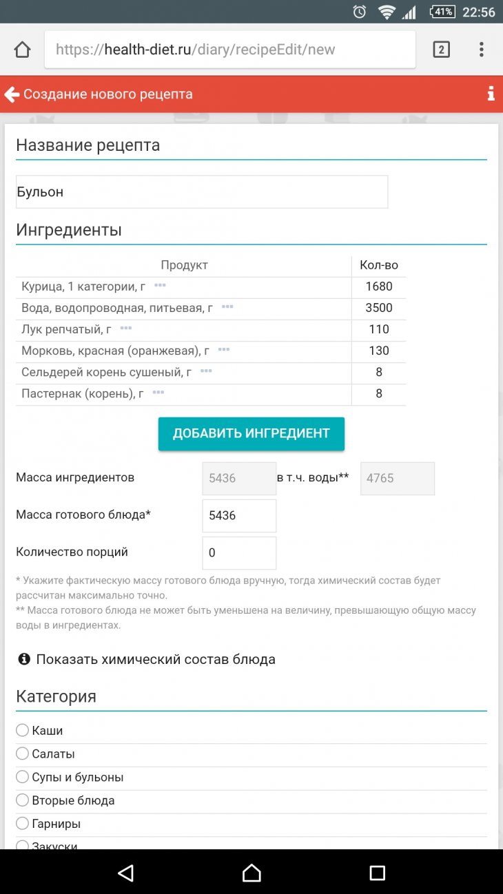 Как посчитать калорийность бульона? Ниже привожу вес продуктов при
