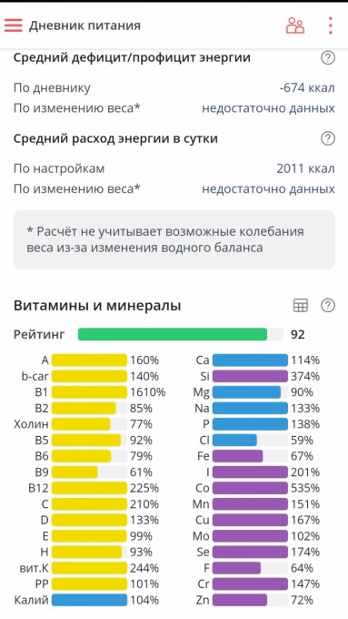 | Итого за день | 3160 | 1497 | 68 | 116 | 36 |