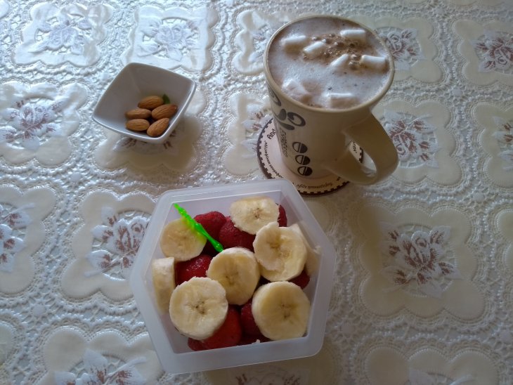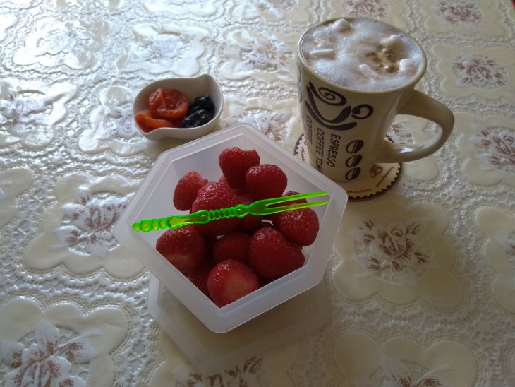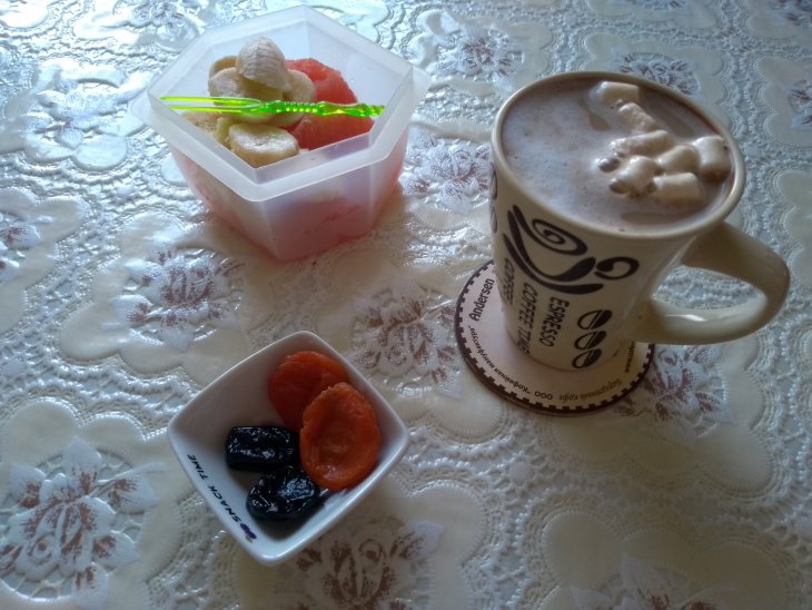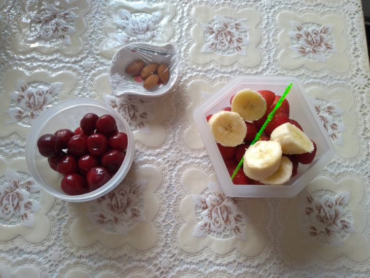 Дневной перекус пришлось менять (молоко прокисло). Ну ничего будет больше фруктов.