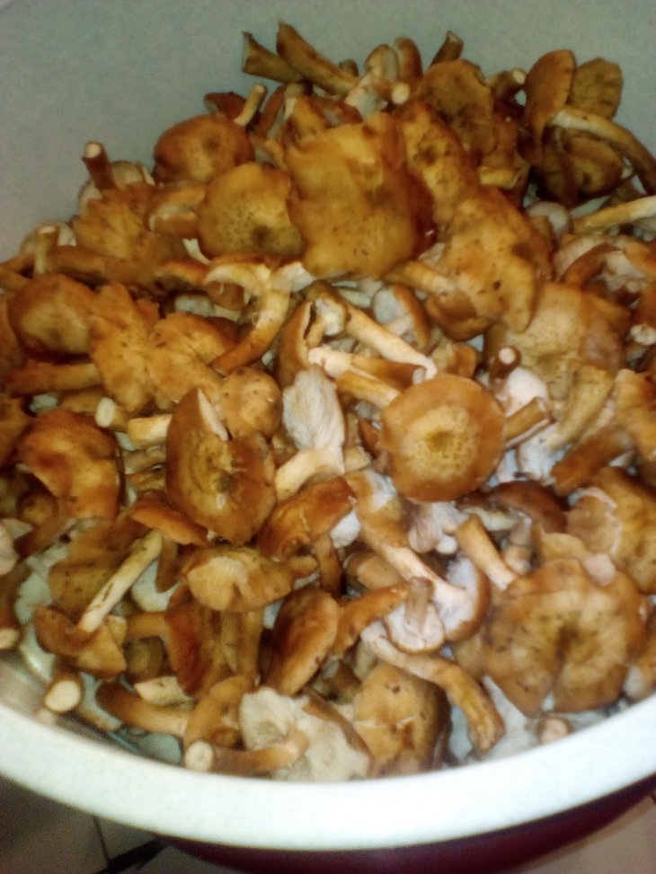После возвращения домой перебирали грибы всей семьёй. Варили,