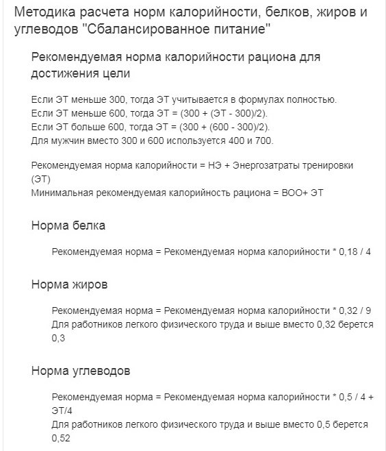 А вообще интересно, по какому принципу и по какой формуле все эти нормы рассчитываются? На другом сайте у меня норма вообще практически в два раз меньше, чем на МЗР, а именно 33.9 - 37.4 г, что тоже не соответствует заявленной 30:20:50 пропорции, там ещё и мои нормы Б и У больше, чем на МЗР.